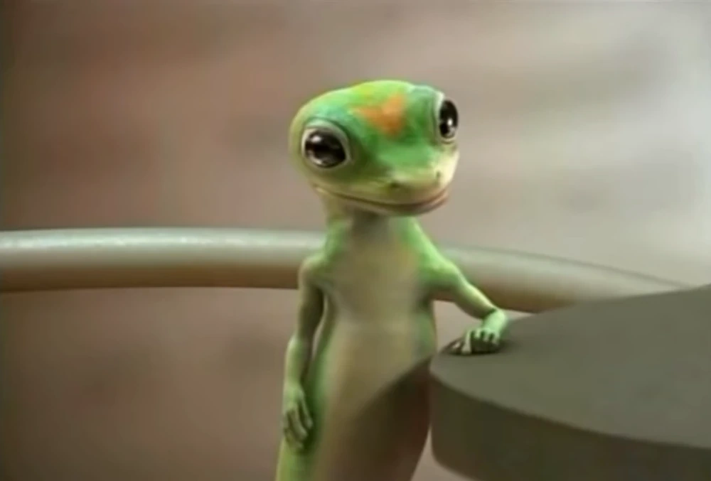 Gecko: I'll tell you why. Because people trust advertising icons. Some bloke tells you to go to GEICO.com and you're like, "Really, just who might you be?" But a gecko, he can be (taps desk) trusted. I asked if you want to save money on car insurance, and you're like, "Yes, thank you. Mind babysitting my kids." And I'm like, "Of course I'll sit with the kids." You're like a brother to me.